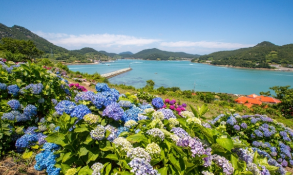 고흥 쑥섬, 고양이섬이라는 애칭으로 불리던 이 섬은 최근 전국에 손꼽히는 수국 명소로 주목을 더 받고 있다. 쑥섬의 수국이 만개한 아름다운 풍경 사진들이 SNS를 통해 널리 퍼지면서 많은 사람들의 관심을 끌기 시작한 것이다. 쑥섬의 수국은 보통 6월 초부터 피기 시작하여 6월 중순에서 7월 초까지 절정을 이룬다. 이 시기에 섬 전체가 수국으로 뒤덮이는 환상적인 풍경은 방문객들에게 강렬한 인상을 남긴다. 쑥섬정원에는 다양한 품종의 다채로운 색상의 수국이 식재되어 있어 더욱 풍성하고 아름다운 볼거리를 제공한다.