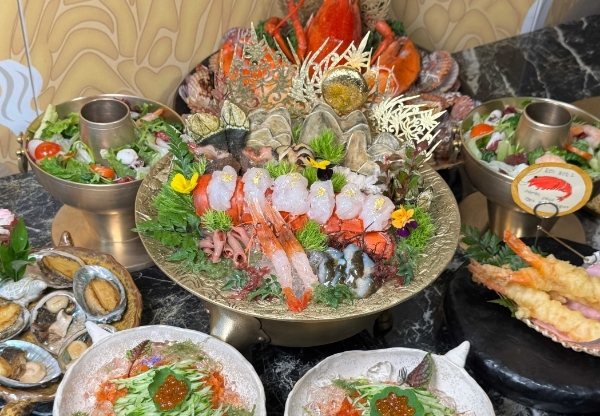 해천어부는 최상급 캐나다산 점보 랍스터와 독도 꽃새우를 사용해 바다의 보물을 한 상에 담으며, 플레이팅 속에는 푸른 산, 황금빛 봉황, 사슴, 거북이 등 한국적 상징을 담아 장생과 번영의 의미를 전한다.