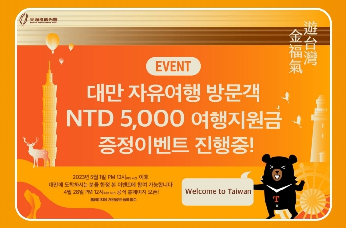 행사기간: 2023년 5월 1일 정오 12시 ~2025년 6월 30일(대만 현지 시간 기준) * 지원금 소진 시 이벤트 종료