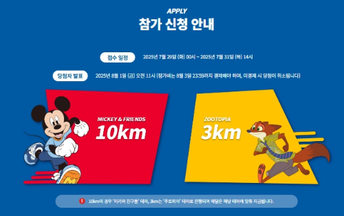 디즈니런 서울 2025는 선착순이 아닌 추첨제로 진행된다. 접수 기간 내에 신청을 완료하고 당첨자 발표일을 확인해야 한다. 당첨되었다면 반드시 결제 기간 내에 참가비를 납부해야 한다.