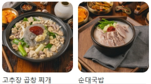 - 대표음식 : 모둠 순대국밥 11,000원, 고추장 곱창 찌개 33,000원, 매우 직화곱창 18,000원