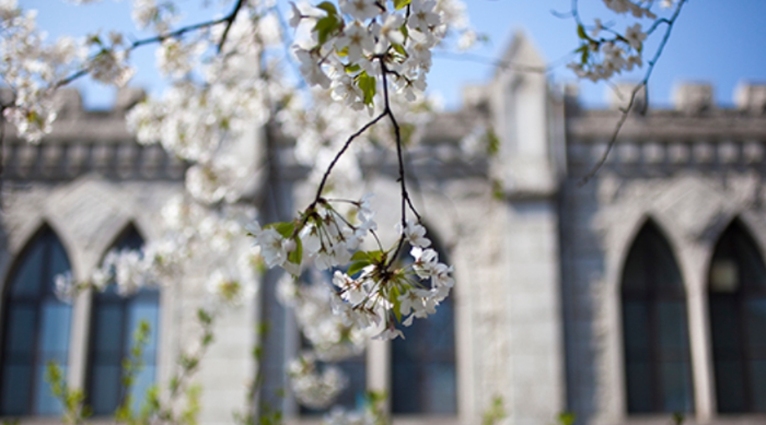 서울 동대문구에 위치한 경희대학교 서울캠퍼스는 아름다운 건축물과 조화를 이루는 숨은 벚꽃 명소로 다른 유명 벚꽃길에 비해 비교적 조용한 분위기에서 꽃놀이를 즐길 수 있다. 경희대학교는 캠퍼스가 아름답기로 소문난 곳이라 대학 캠퍼스가 주는 낭만을 즐기며 여유롭게 산책하기 좋다. 특히 이곳은 유럽풍 건축물과 벚꽃이 어우러져 만들어내는 이국적인 풍경을 감상할 수 있어 더욱 좋다. 청운관 앞 벚꽃길과 평화의 전당 주변이 벚꽃 포인트로 유명하니 참고하자.