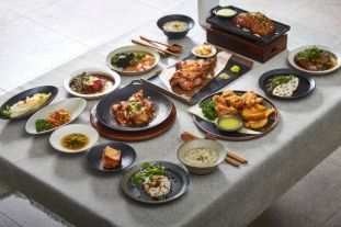 - 마늘양념닭구이와 순천 미나리소금, 구운 통마늘