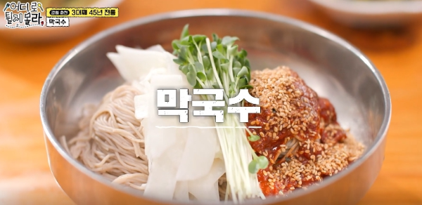 이 집은 45년 전통의 막국수 맛집으로 메밀 함량이 약 80%까지 높은 메밀을 직접 제조해서 막국수를 낸다는 점이 특징이다. 메밀의 함량이 높은 만큼 일반적인 막국수보다 메일의 특유의 고소함이 더 높고 일반 막국수보다 얇은 면발을 또 다른 식감을 제공한다는 것이 특징이다. 여기에 40년간 축적된 노하우로 제조한 육수와 양념장은 감칠맛이 뛰어나다. 막국수와 함께 즐길 수 있는 열무김치와 감자전도 이 집의 인기 메뉴다. 이 날 방송에서는 설탕 폭탄을 양념 등 출연진 저마다의 음식 즐기는 방법 경쟁이 붙어 웃음을 자아내기도 했다.