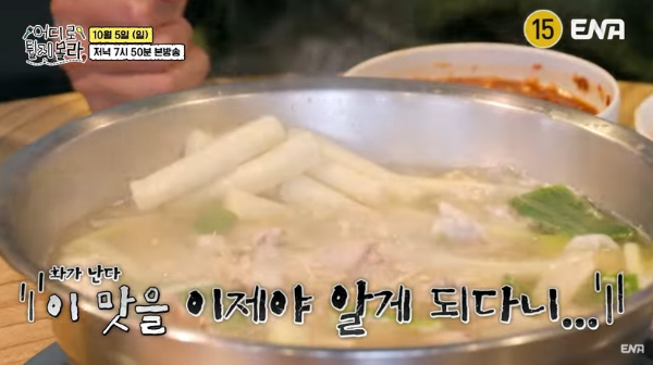 이곳은 오랜기간 지역 주민들 사이에서 국물 맛으로 꾸준히 입소문이 난 닭한마리 전문 식당이다. 이곳은 주문 즉시 닭을 푹 고아낸 맑고도 진한 육수가 특징으로 감칠맛이 깊고 끝맛이 깔끔해 마지막에 칼국수 사리를 넣어 먹어도 깔끔하게 맛있다. 출연진이 예상한 닭한마리와 전혀 다른 음식이라고 표현을 한 것도 이 집만의 노하우를 짐작해 볼 수 있다.