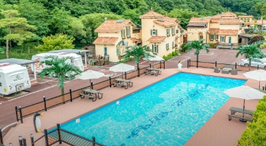 전북 무주군 무풍면에 있는 알로프랑스는 구천동계곡 옆에 위치한 펜션이다. 계곡에서 물놀이와 다슬기 잡기 등을 즐기기 좋은 곳에 위치해 있고 펜션 내부에 커다란 수영장과 워터슬라이드를 갖추고 있어 여름 물놀이를 좋아하는 가족단위 여행객이 선택하기 좋은 펜션이다. 프랑스 스타일의 예쁜 외관과 대부분의 객실에는 큰 스파욕조를 갖추고 있고, 캠핑을 느낌을 낼 수 있는 럭셔치카라반 숙소도 갖추고 있어 투숙객의 평가도 좋은 펜션 중 하나이다.