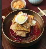 송기원 헤드셰프가 개발한 특화된 2가지 소스와 해물육수가 올라간 진주 섞음냉면