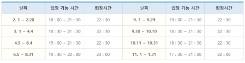 - 태안 네이처월드 빛축제 시간 : 일몰 후 점등 ~22:30 (월별 입장시간과 퇴장 시간이 다름)