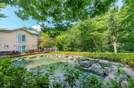 객실은 일반형과 독채형으로 나뉘며 2~6인 규모까지 선택 가능하고, 산 뷰 또는 수영장뷰를 선택할 수 있어 취향에 따라 고를 수 있다. 또한 스크린골프 시설도 마련되어 있어 골프 애호가에게도 매력적이다. 바비큐장도 따로 있어 숲 속 여유로운 저녁을 즐기기에 안성맞춤이다.