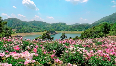 전라북도 임실, 잔잔한 물결 위로 피어나는 물안개가 아름다운 옥정호는 그 자체로 한 폭의 수채화 같은 풍경을 선사한다. 하지만 5월이 되면 이 아름다운 호수는 붉고 탐스럽게 물든다. 바로 옥정호의 명물, 작약꽃밭 덕분이다. 전국 어디에서도 쉽게 볼 수 없는 호수를 배경으로 펼쳐지는 작약꽃의 향연은 여행객들의 발걸음을 붙잡는다.